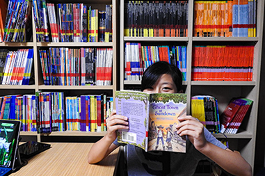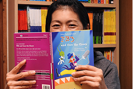 興味を持てる1冊を手に取って何よりも楽しみながら英語に触れることが大切。楽しむ事が脳への刺激にもなり知識の定着も促進します。これは子供でも大人でも同じです。読み始めて面白くなかったらやめて別の本を選んでも全然問題なし。それは、「易しい本をたくさん読む」ことに加えて、面白さは多読の基本原則の1つにもなっているからです。英語の「勉強」という発想を離れて、「読書って楽しい!」と思えるようになればしめたもの。当教室にはイギリス英語とアメリカ英語の7,000冊を誇る洋書ライブラリーがあり、1冊10語の本から100,000語を超えるものまで、幅広い分野の本を揃えています。