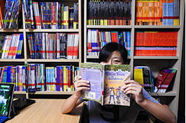 当教室の多読ライブラリーには多彩なジャンルの本が揃っています。絵本、SF,ロマンス、サイエンス(生物、化学、物理、地学)、数学、世界史、地理、グラフィックノベル、古典、神話など、自分の興味に合う本を選んで異文化理解を高めたり、コンテンツを英語「で」勉強する事を通じて速読力を獲得していきましょう。